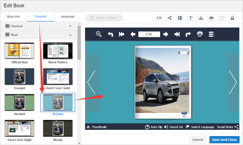 There are multiple templates for you to apply to the flipbook directly. And once you select a template, you can choose a theme.