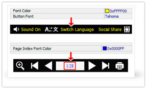 Page Number Caption: Set caption for each page of your book. The format is: "acture page number:caption;". For example, if you set "1:I;2:II;3:III;4:IV;5:V;6:First Unit;7:;8-100:1+", it will show "I" for the first page, "II" the second page, "III" for the third page, "IV" for the forth page, "V" for the fifth page, "First Unit" for the sixth page, empty/nothing shown for the seventh page, then show "1,2,3...93"for page 8 to 100 (1+ means show caption from number 1, and increase 1 corresponding to the later pages). Another example, you have 30 pages book and you want to show page numbers from 3001 to 3030, then you can set caption as "1-30:3001+".