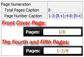 The caption value also can be set with Macro: StartPageIndex-EndPageIndex:any string{N/R/r+StartNumber}any other string ("N" means Arabic number, "R" means uppercase Roman number, "r" means lowercase Roman number, "+" means increase progressively). For example ,if you want to show page numbers for a 1000 page book as P6,P7,P8...P1005, you may use this: 1-1000:P{N+6}; if you want to show page number for a 10 page book like, Page I#, Page II#, Page III#, Page IV#... Page X#, you can simply use "1-10:Page {R+}#".